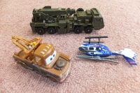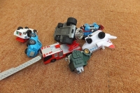 結果:○ハンマー、ドライバー→折れた部分を接着。高所作業車荷台回転部割れ→ビス止め。トランスホーマーバス変体ジョイント部折損→アルミ板で補強して接着。
